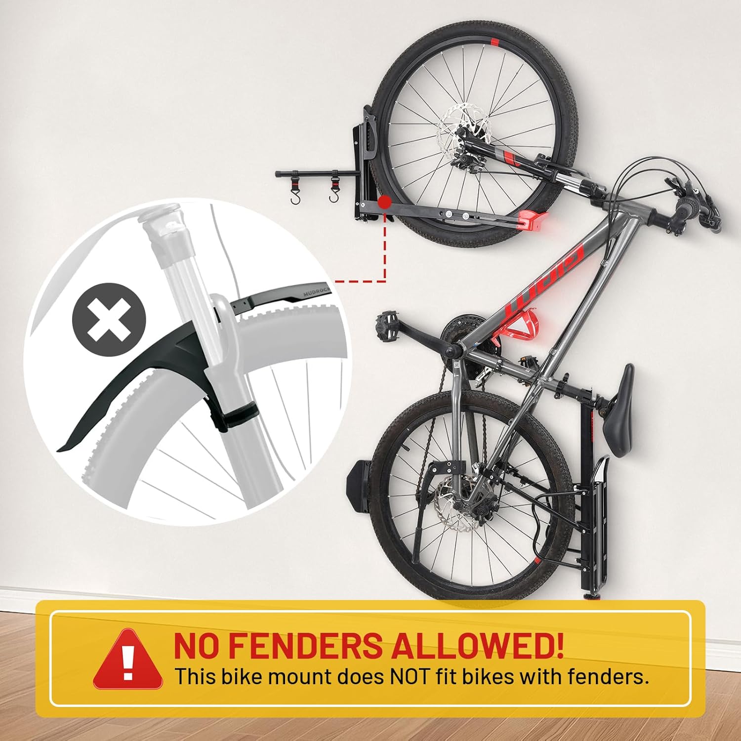 • 【Convenient Storage Hooks】Wall bike rack for garage in addition to securely holding your bike, the bike hangers for garage come with two extra storage hooks. You can hang helmets, locks, or other accessories on them for easy access and to prevent them from falling.