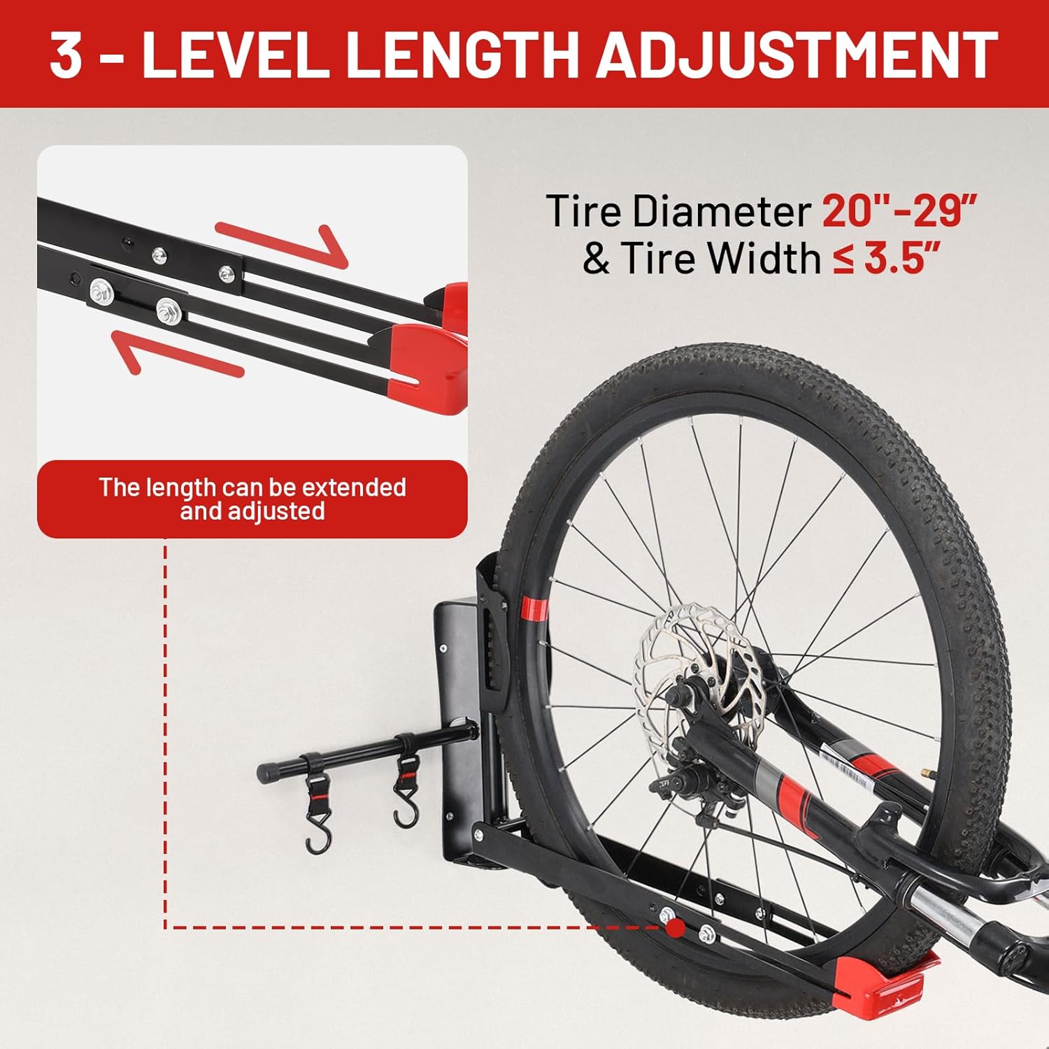 • 【Versatile Bike Compatibility】AUMENTAR bike rack garage wall mount is compatible with a wide range of bicycles, including mountain bike, road bike, cruiser bike, folding bike, and kids' bike with tires diameter of 20""-29"" and width up to 3.5"". The adjustable arm length allows it to adapt to different tire sizes.