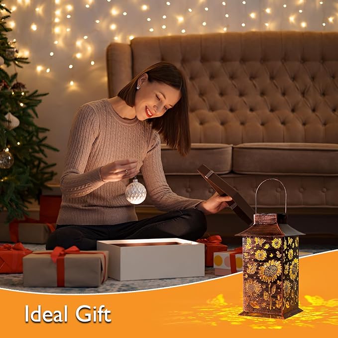• 【ELEGANT HOLLOW DESIGN】The sunflower solar lanterns boast a vintage-inspired hollow design adorned with intricate patterns. When illuminated, they cast beautiful, realistic patterns onto surrounding surfaces, creating a captivating and enchanting atmosphere