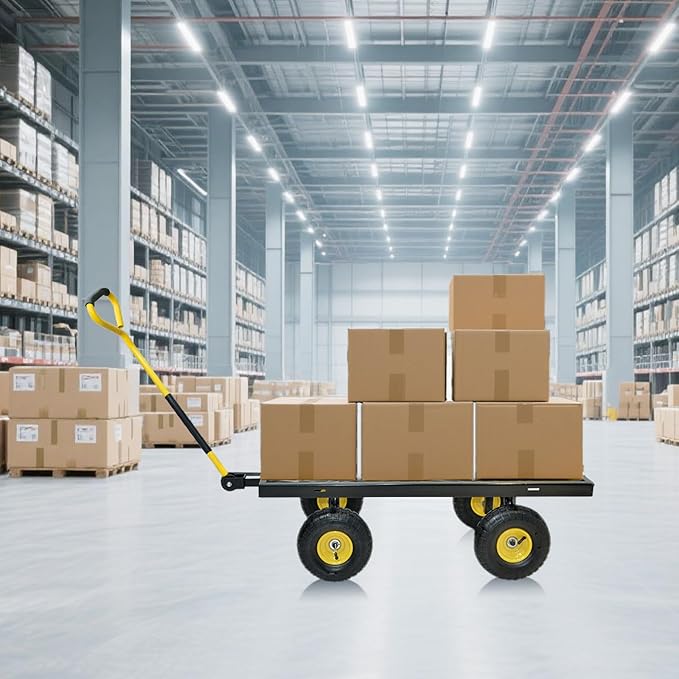 • 900LB Heavy Load Capacity: Built with a solid steel frame and reinforced construction, this cart handles up to 900 lbs—perfect for heavy-duty hauling of firewood, tools, or farm supplies.