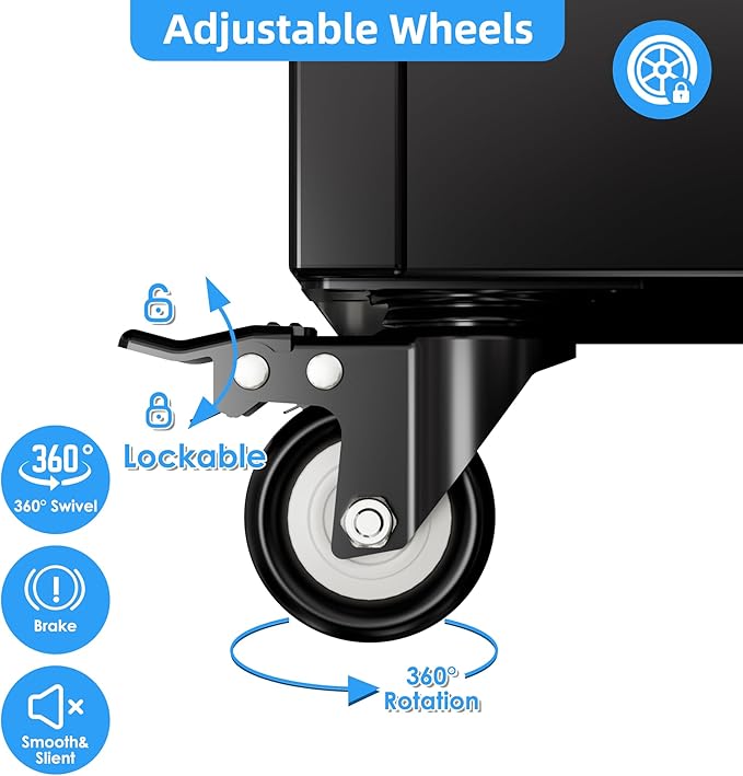 • 【Easy to Move 】 The broom closet storage cabinet has four lockable wheels that can be rotated 360 degrees to provide adaptability and convenience. You can easily move it anywhere you want without worrying about being out of control. (adjust up to move, adjust down to lock)