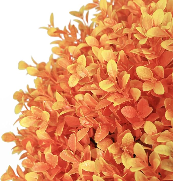 • Realistic Fall Color & Texture: Each faux topiary ball bush features realistic autumn-toned boxwood foliage in deep orange, these boxwood plants look like real fall foliage. Each ball bush features a full, lifelike shape—perfect artificial outdoor shrubs for seasonal curb appeal.