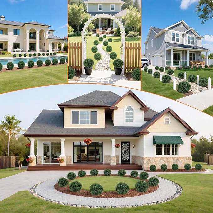 • [Hassle-Free Greenery] The artificial outdoor plants stays lush and tidy with minimal effort—unlike real trees that require constant watering, pruning, and cleaning up fallen leaves. No bugs, no wilting, and no seasonal mess. Whether you're decorating a vacation home or simply want year-round greenery without the hassle, the fake bushes offer all the beauty of nature—without the chore.
