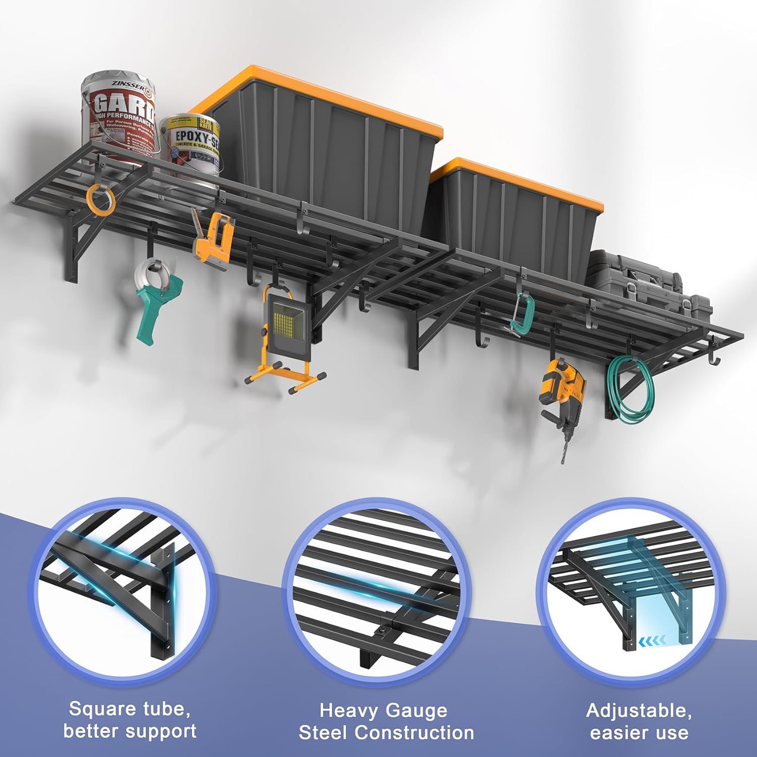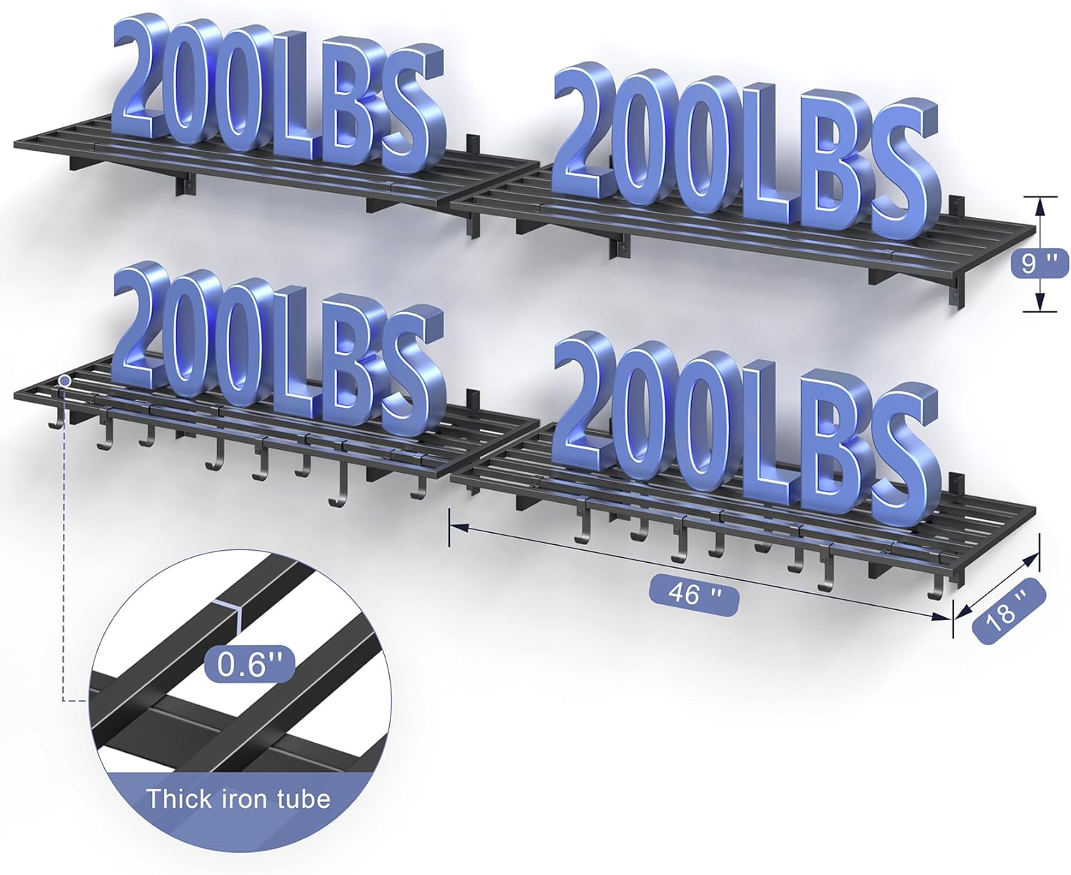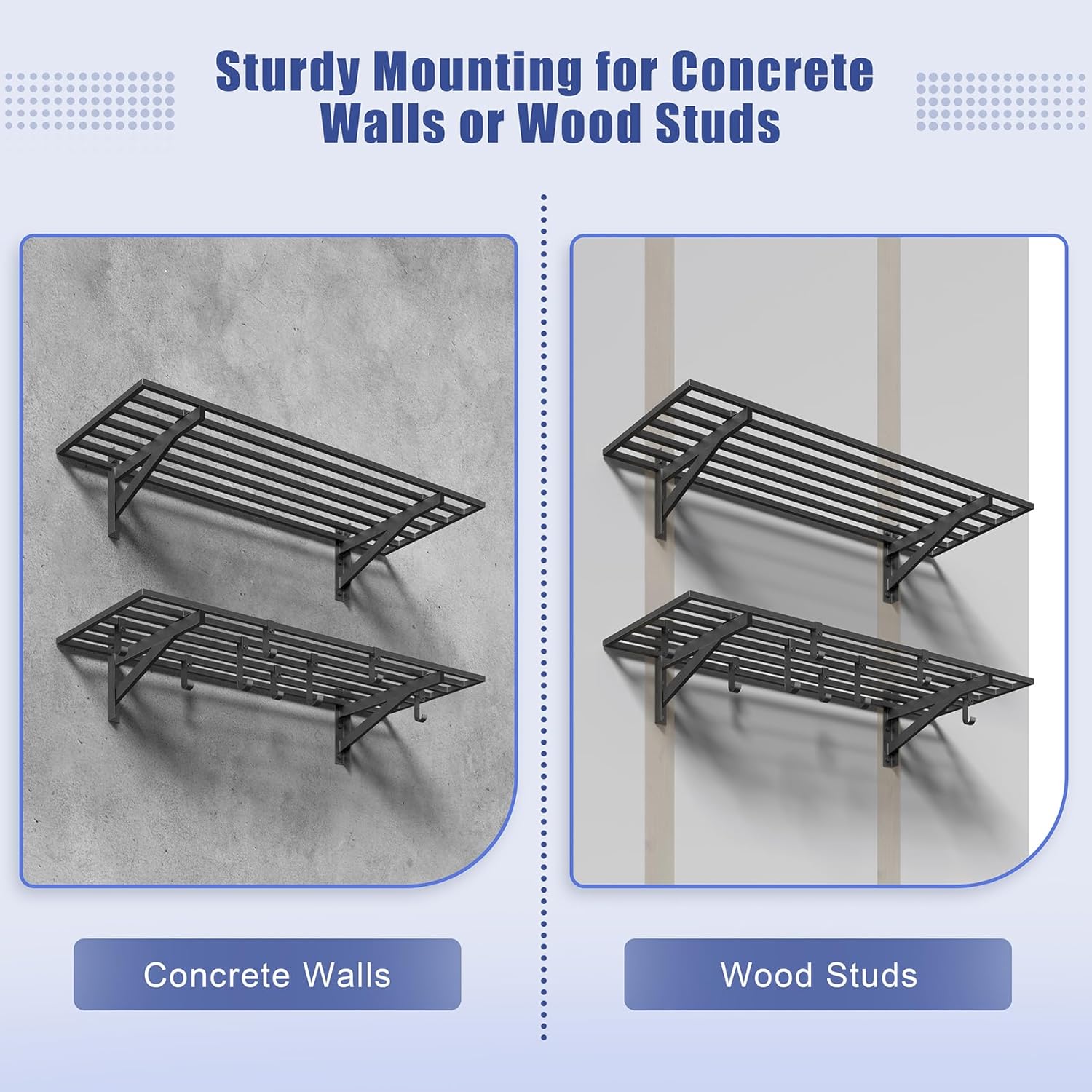 • PREMIUM STRENGTH & STABILITY: Engineered with heavy-duty steel, our wall shelf system features reinforced square tube supports, a seamless integrated frame, and secure U-hooks for superior durability. Every component undergoes rigorous quality testing to ensure maximum safety and long-lasting performance