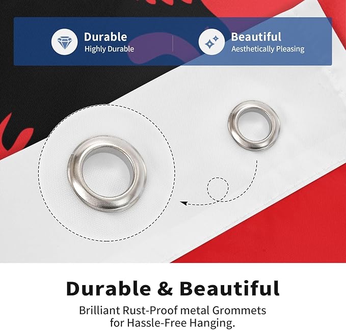 • This 2x3 ft flag Albania Albanian Flag banner is stitched double all around the edge and strengthened by two brass grommet to increase flag life and prevent fraying. Installation and disassembly are very convenient.