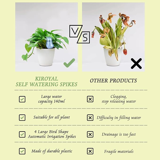 • 【Interesting shape】: KIROYAL self-watering spikes use a bird design shape, which is different from the traditional unsightly irrigation equipment. It adds ornamental value to the potted plants, and also makes children more interested in the cultivation of plants. It is the growth partner of plants.