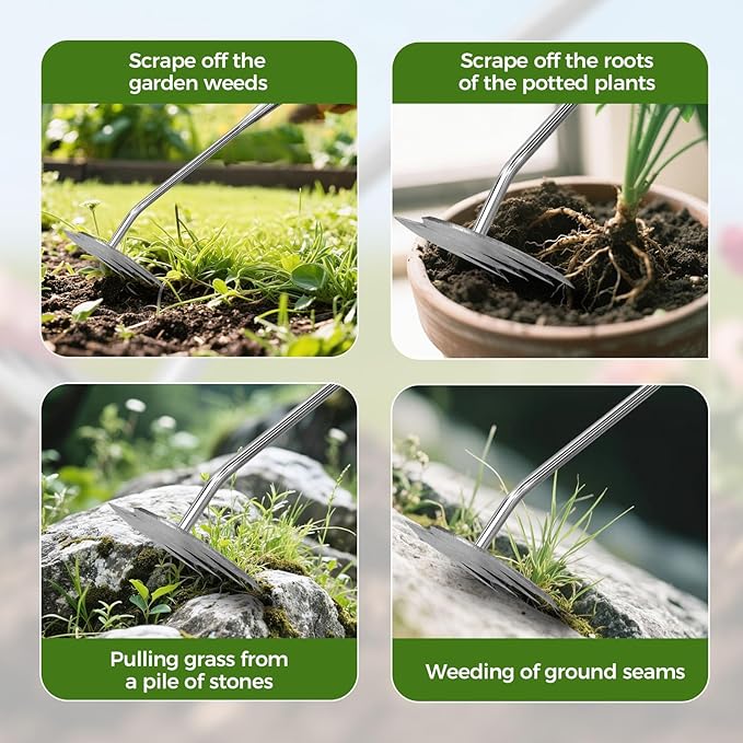 • 🪓 [2025 New Upgraded Weeding Tool] With a unique four-tooth structure design, it can complete root prying, soil loosening and weeding with a single operation. Easily deal with deep-rooted thistle weeds and stubborn plants such as dandelions. The newly upgraded extendable handle design is suitable for both standing and squatting positions, providing an efficient and effortless gardening experience.