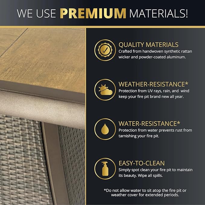 • 【Premium 42" Propane Fire Pit Table】Elevate your patio with this spacious 42-inch outdoor fire pit centerpiece. Crafted from handwoven synthetic rattan wicker & powder-coated aluminum frame for lasting style and weather/rust/fade resistance