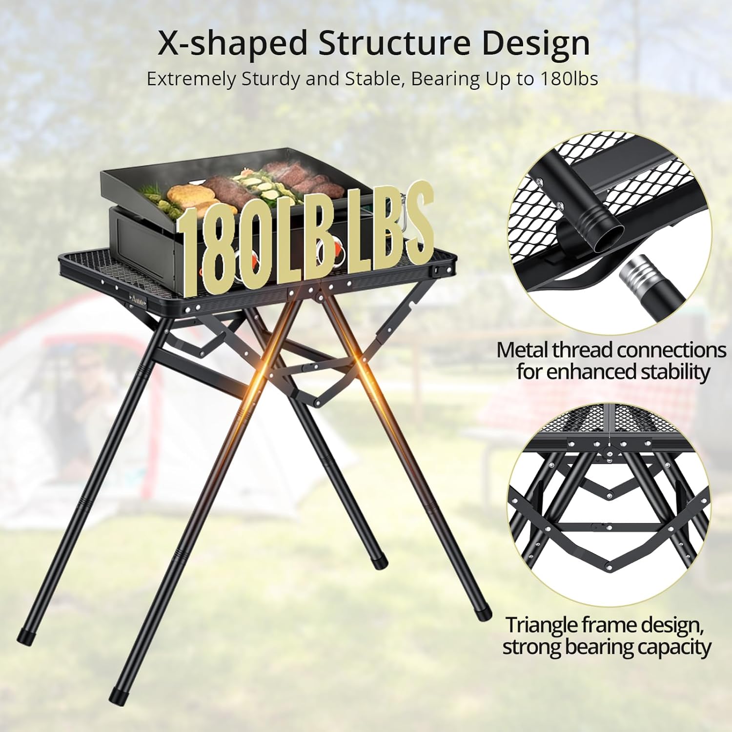 • X-Shaped Structure Design, More Sturdy and Stable: Anbte portable grill table feature a newly upgraded X-shaped structure design with a load capacity of up to 180 pounds, making them extremely sturdy. The table legs are connected with a spiral design, ensuring that they are tightly connected for enhanced stability and preventing wobbling
