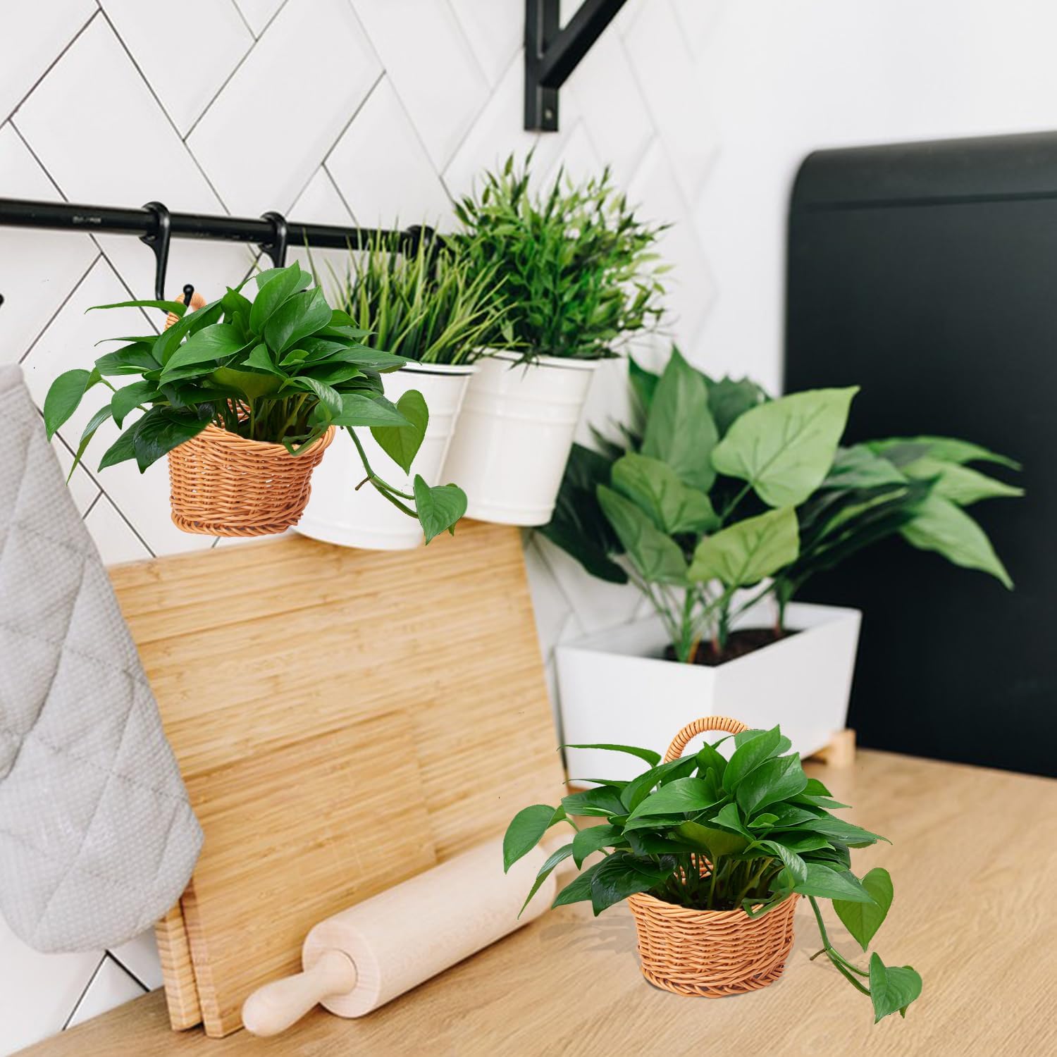 8 Pack 5.5 x 4.3 inch Woven Hanging Fruit Basket, Wall Hanging Wicker Baskets, Wall fruit Wicker Basket for Kitchen, Planter, Vegetable & Fruit, Boho Home Decor