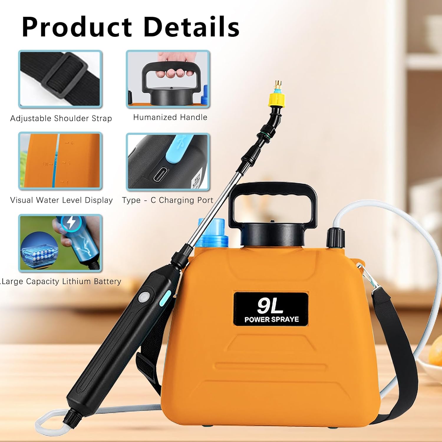 • 🛡️ Durable Build & Ergonomic Comfort – Built to Last:Crafted from premium HDPE and ABS materials, this 2.4-gallon sprayer is tough enough for indoor and outdoor use. The ergonomic handle ensures fatigue-free grip, even during extended sessions. Plus, the built-in filter prevents clogging, delivering smooth and consistent performance every time