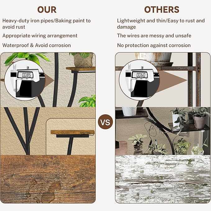 • 【Easy Installation】We have provided you with the appropriate wrench and screwdriver. Combined with the manual, it will help you complete the installation easily. For homes with kids or pets, included furniture straps provide extra stability, keeping your tall plant stand secure and safe.