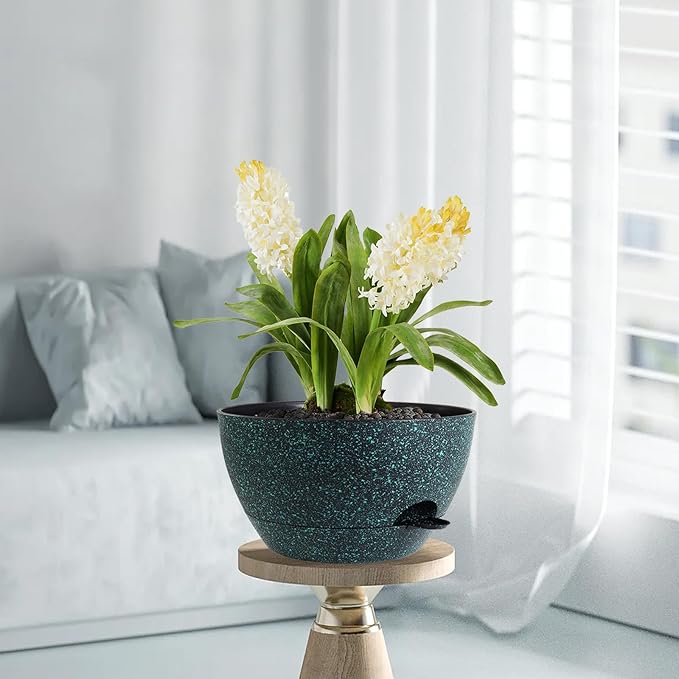 • 【Ventilation & Drainage】12-Inch self-watering hanging planter has multiple drainage holes between the planter and the tray, which can effectively drain and ventilate the plant. It can drain excess water and prevent overwatering, which is beneficial to promote the respiration of plants