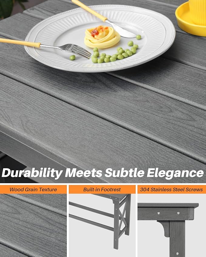 • Sturdy X-Frame with Rust-Resistant Stainless Steel Hardware: The visually striking X-shaped leg design provides excellent stability and style. Reinforced with premium 304 stainless steel screws, this outdoor bar height table withstands corrosion and rust, ensuring lasting strength in all weather conditions—perfect as an outdoor high top table or tall patio table.
