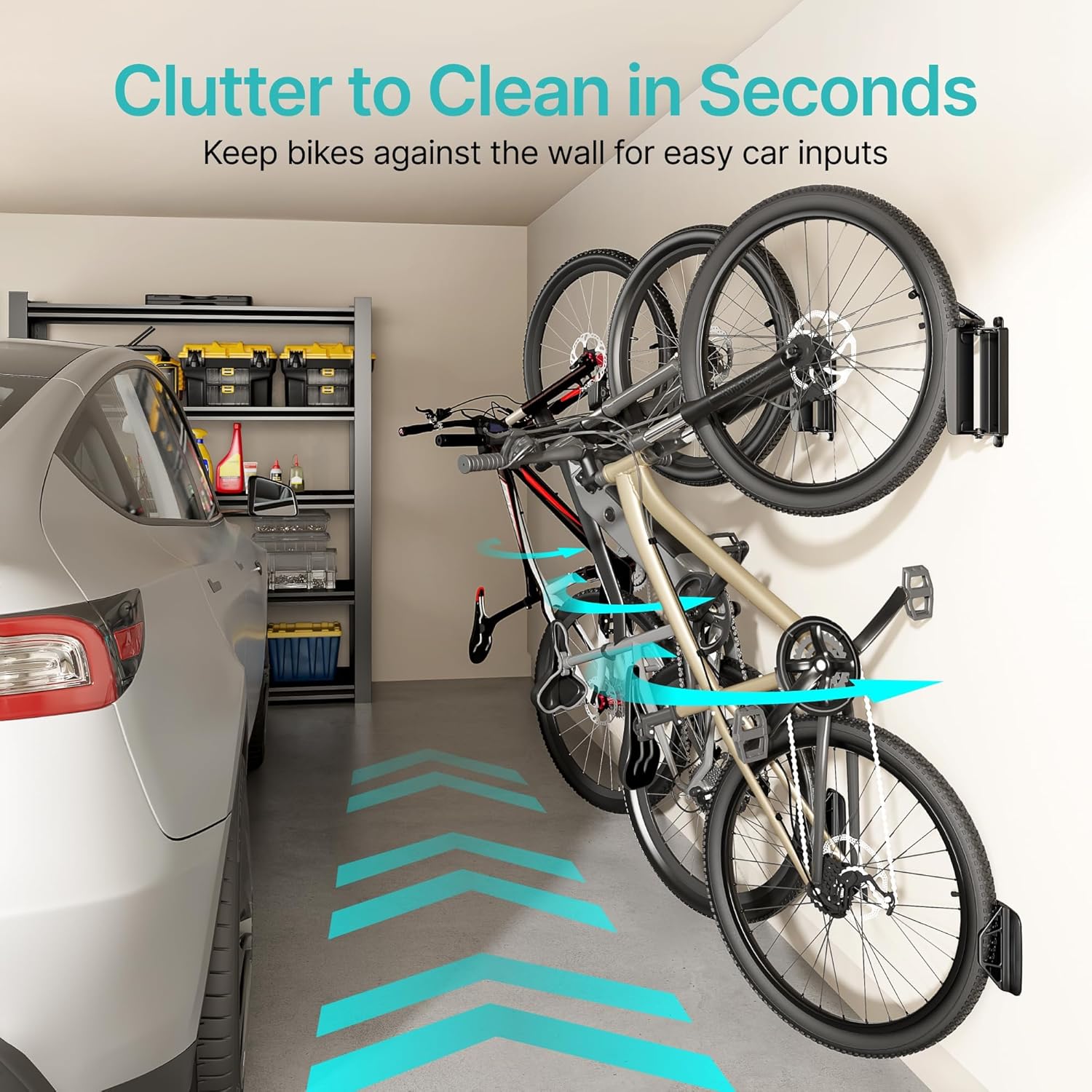 • 【Check Size】The moment you mount your bike on this garage bike mount, everything feels more organized. It accommodates mountain bikes, electric bikes, road bikes, hybrid bikes, city bikes, and even kids' bikes. Just ensure your tire height is under 3.15 inches and the width is less than 3.5 inches. Instantly, the bike rack wall mount transforms your entryway into a tidy, welcoming space where your bike is always within easy reach.