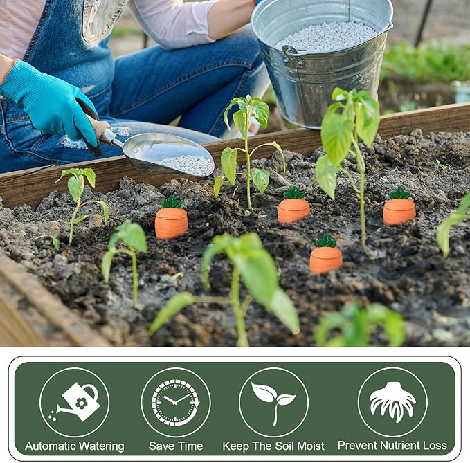 • Set of 4 Carrot-shaped Watering Spikes: each terracotta watering spike holds about 24oz (700ml) with an adorable carrot design that provides continuous moisture for up to 3 weeks, preventing overwatering, keeping plants hydrated while adding garden charm