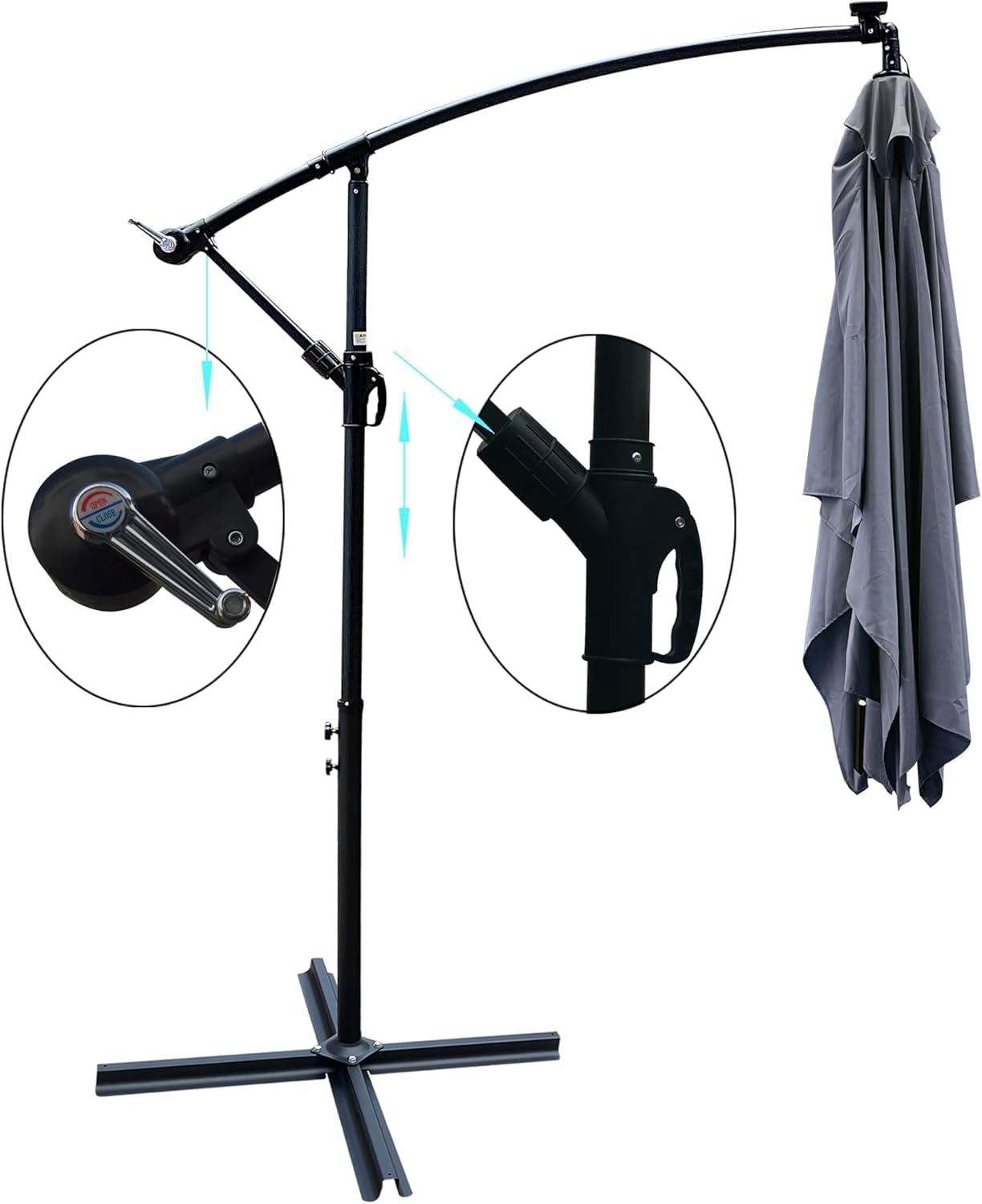 • ✅ HIGH DURABILITY: Crafted from 180G polyester fabric, this 10x6.5ft offset patio umbrella ensures fade resistance, waterproofing, UV protection, and easy cleaning. The 1.9" diameter rust-resistant pole, 6 sturdy steel ribs and cross base, with a powder-coated finish, can withstand winds up to 20 mph. The vented top design increases stability and keeps the area cool, making this cantilever umbrella ideal for long-term outdoor use.