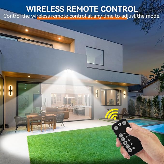 - 𝗔𝗱𝗷𝘂𝘀𝘁𝗮𝗯𝗹𝗲 𝗗𝗲𝘀𝗶𝗴𝗻 𝗮𝗻𝗱 𝗘𝗮𝘀𝘆 𝗜𝗻𝘀𝘁𝗮𝗹𝗹𝗮𝘁𝗶𝗼𝗻 : just Within 3 steps (Refer to our installation Tutorial video), The Triple Heads of This Security Light can See Everything that's Happening in your Yard With 270-degree Detection Zone, Brings Extra Safety to your home, Security Motion light can be Triggered by the Moving Human, Cars or Animals up to 72 feet Sensing Range at 270° Detection Angle; Ensuring Coverage of up to 6000 sq. ft