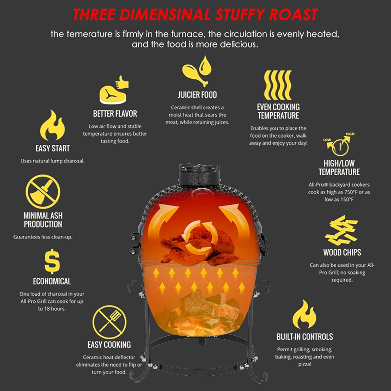 • ​​True Charcoal Flavor Master​​: Kamado-style ceramic construction amplifies smoky aroma without lighter fluid,using 40% less charcoal than traditional grills for eco-friendly grilling.