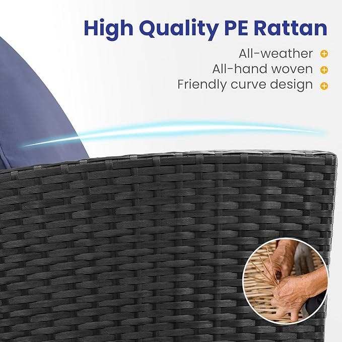 • All-Weather Durability: Built to last,the patio furniture set combines rugged construction with low-maintenance care. The powder-coated steel frame and handwoven PE wicker can spend less time maintaining and more time enjoying your outdoor