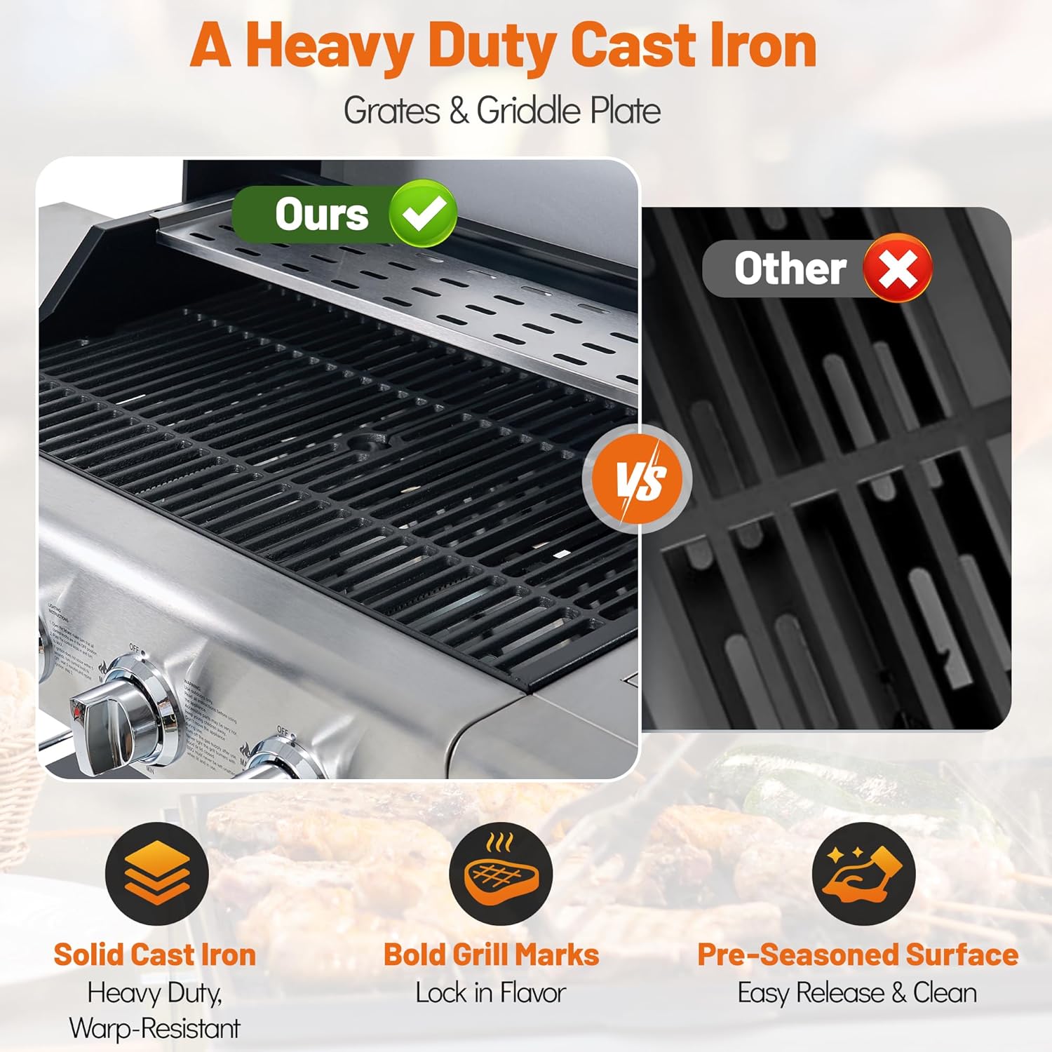 • Outdoor-Ready Durability: Crafted from high-temperature powder-coated steel and porcelain-coated cooking grates, this stainless steel gas grill resists rust, peeling, and flare-ups—ensuring long-term performance in outdoor environments