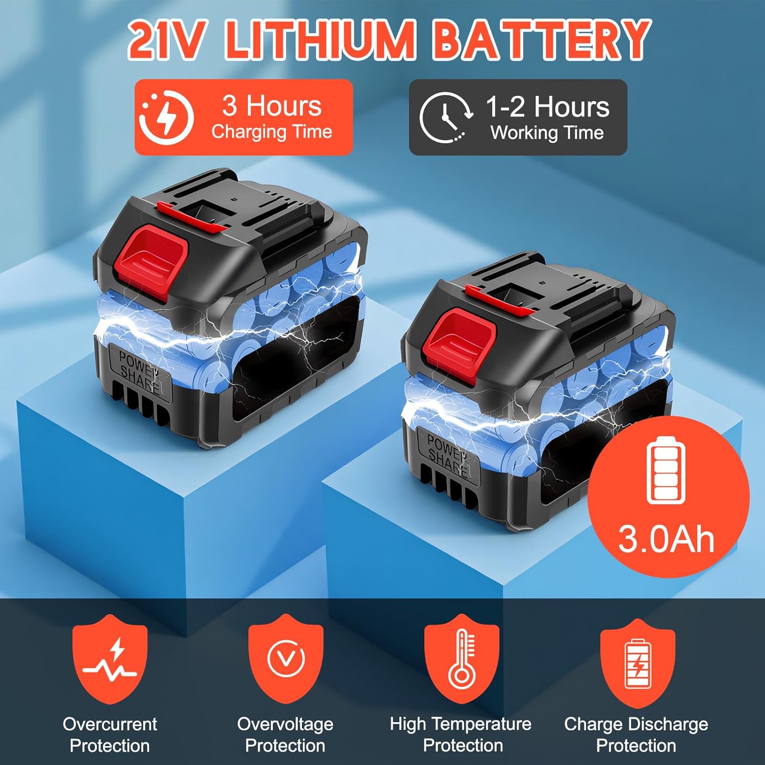 • Powerful 3.0Ah battery for extended runtime: The Electric Handheld Bush Clipper Equipped with two large-capacity 21V 3000mAh lithium-ion battery, it can be fully charged in just 3 hours, providing up to 90 minutes of continuous trimming