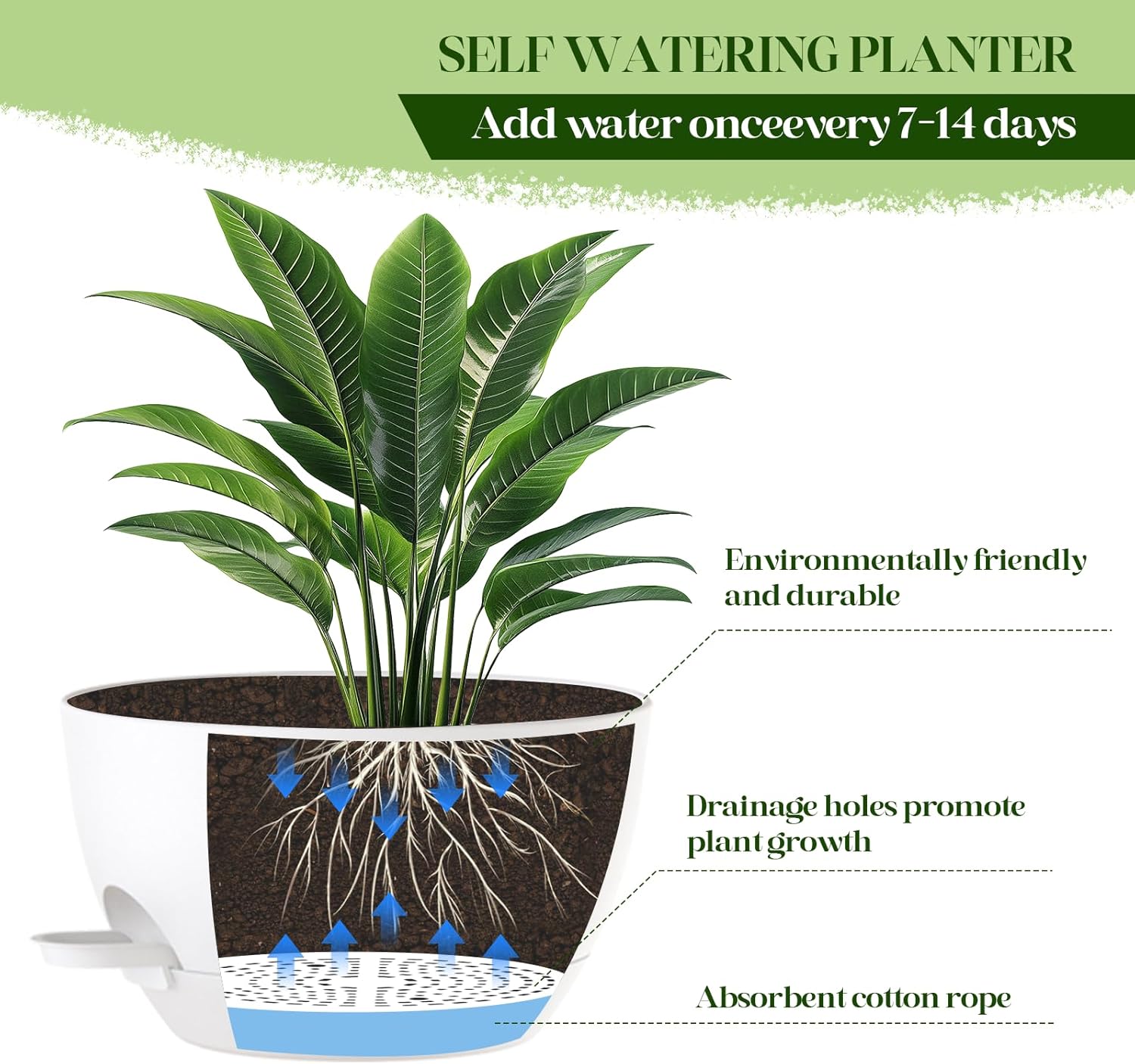 • ✅ 2 Large Self-Watering Planters: Double the value! Includes two 10-inch wide plastic hanging planters with built-in self-watering reservoirs to reduce the need for frequent watering and keep plants healthier.