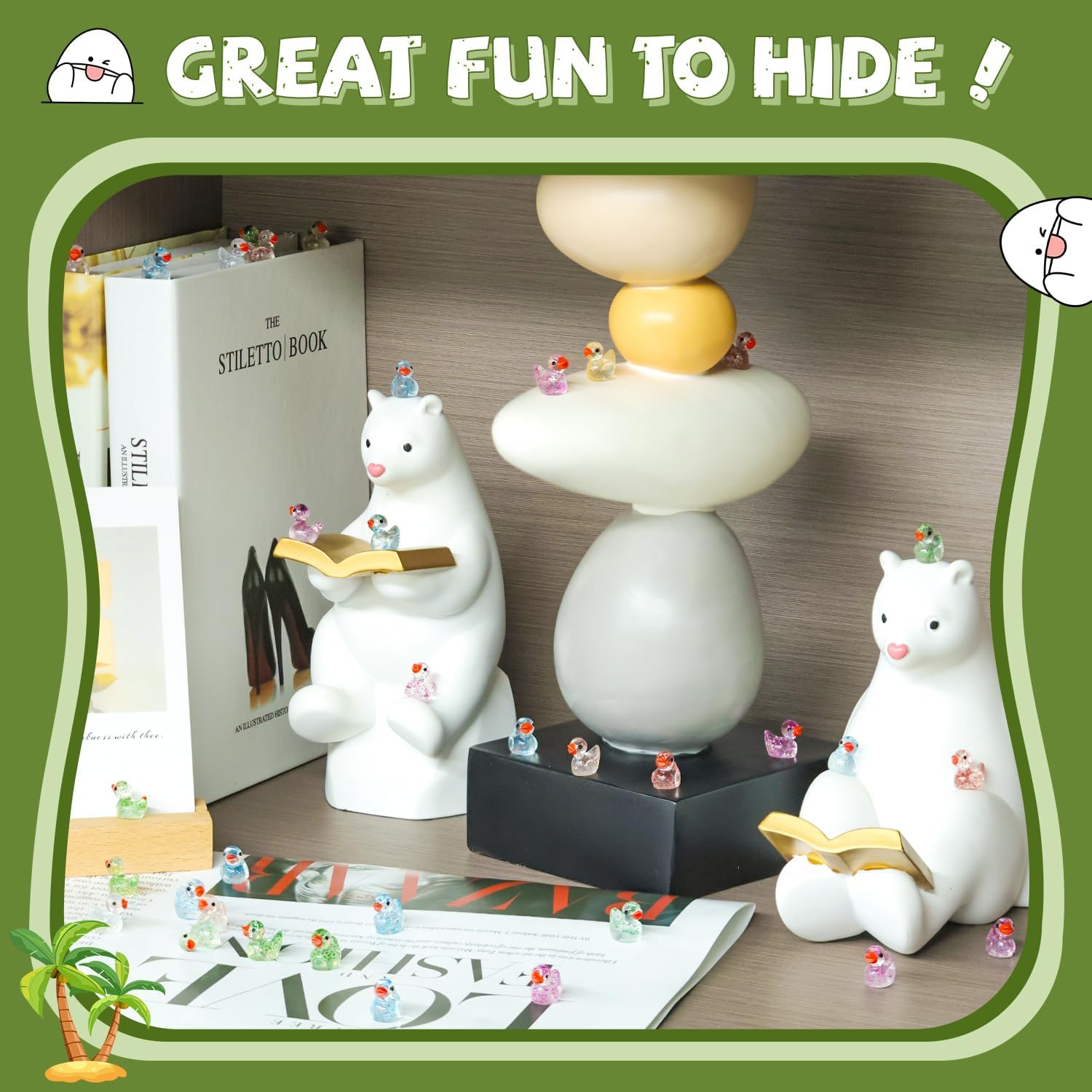 • PACKAGE CONTENT -- One Package includes 200 pcs colorful giltter mini ducks, each tiny figure is crafted with intricate details and vibrant colors, making them cute and eye-catching.Use them to add charm for crafting, or having hide games to enhance fun