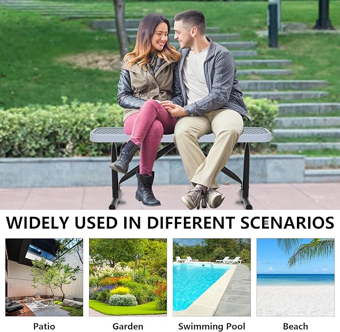 • Features: Available in different specifications, the spacious space can accommodate multiple people to sit comfortably together. The portable heavy-duty steel bench can be adapted to all seasons, suitable for different weather and occasions.