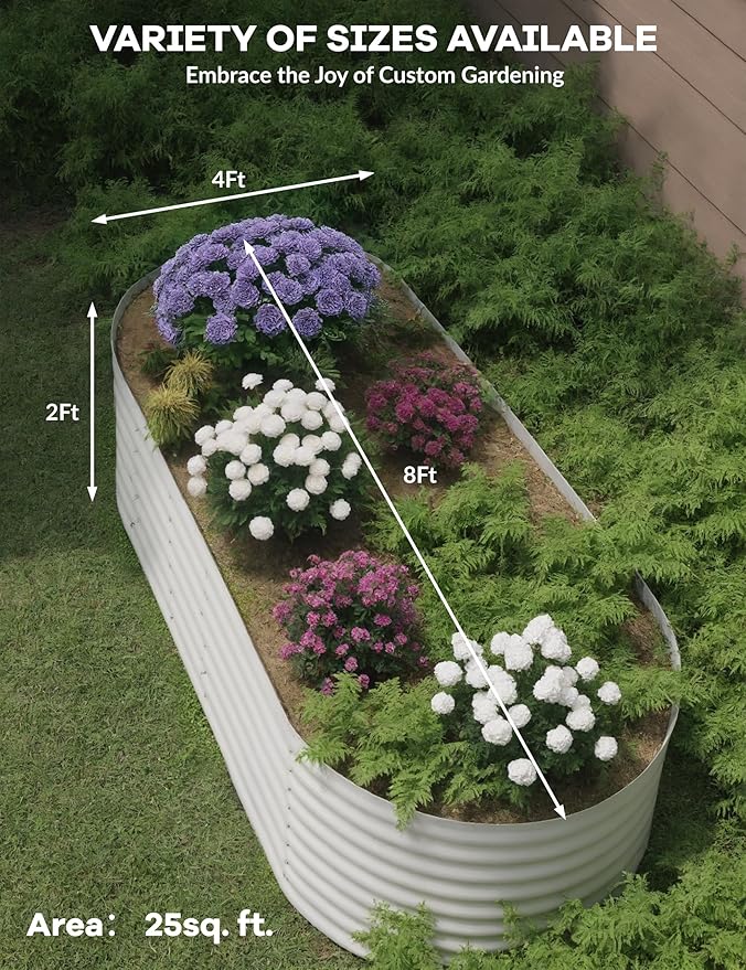 • 【Quick-Assembly Raised Beds Outdoor】This galvanized raised garden bed kit includes all tools for easy setup. The smooth surfaces make maintenance simple, ideal for growing vegetables, flowers or herbs in your outdoor garden box.