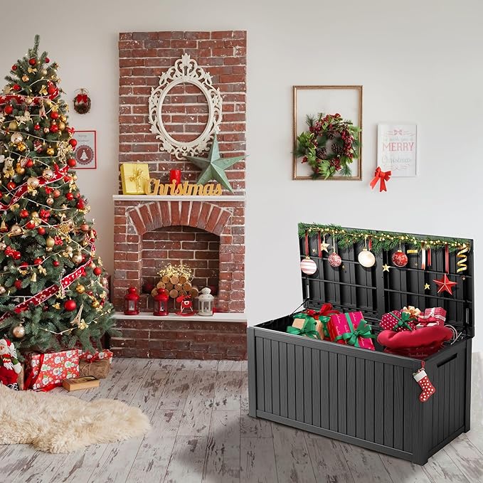 • Extra Room for Cushions & Gear. With its generous interior, this box provides extra space to fit bulky patio cushions, pool floats, or gardening supplies. Its wide-opening lid and sturdy hinges make it easy to access everything you need for outdoor relaxation or work.