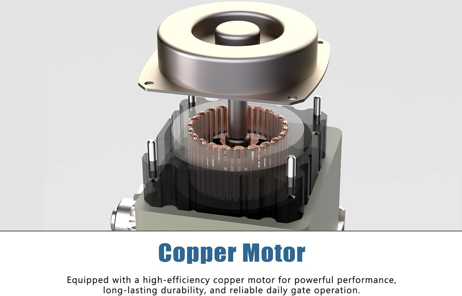 • ⚙️ Compact & Powerful Chain Drive — 130W motor powers sliding gates up to 1100lb with quiet and smooth performance. Comes with 16.4ft heavy-duty chain for easy installation and reliable operation.