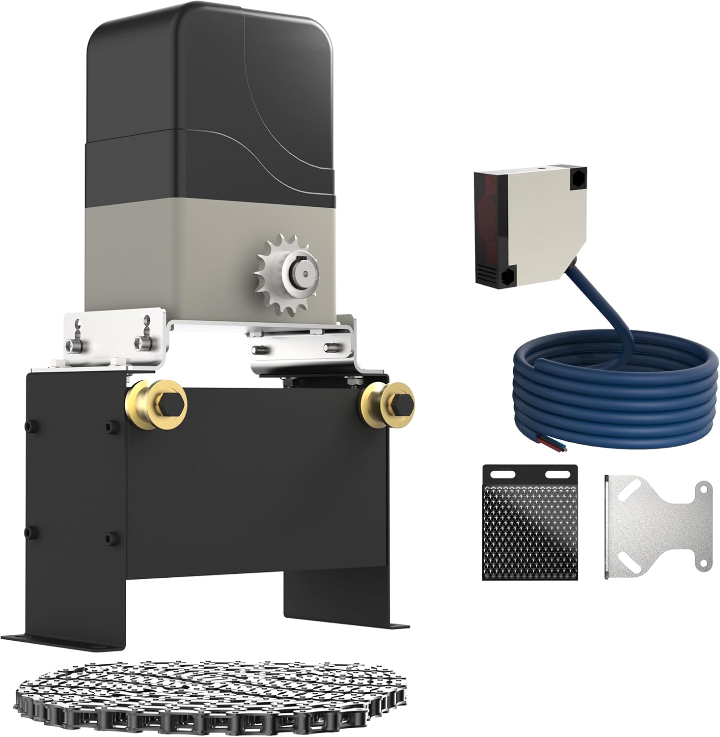 • 🛠️ DIY Installation with Basic Electrical Knowledge Recommended — Includes gate opener, sensor, chains, remotes, and all necessary mounting hardware. Installation requires some basic electrical skills for optimal performance and safety.