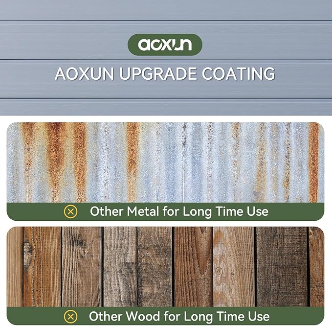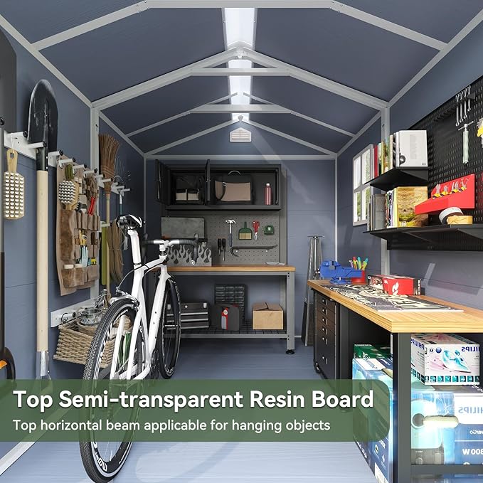 • Large Capacity Space & DIY: The outdoor shed is thoughtfully designed with ample capacity, offering generous space for storing your outdoor items or equipment, such as tools and bikes. This ensures that your backyard remains tidy and well-organized. In addition, you can purchase your own shelving to do DIY on the interior space