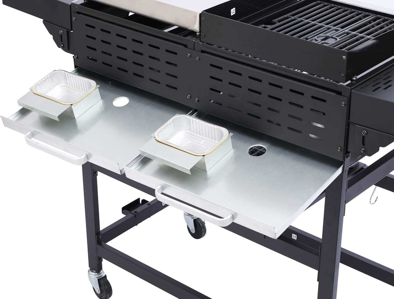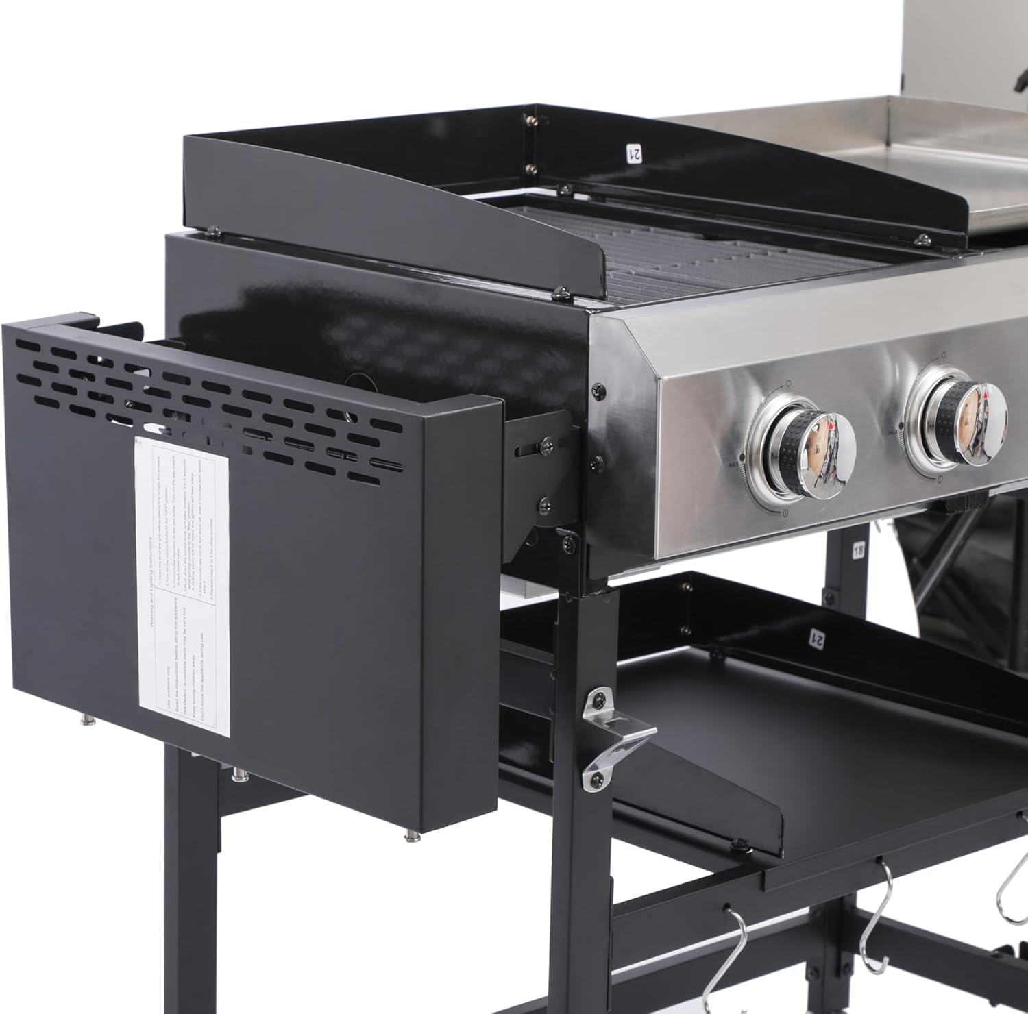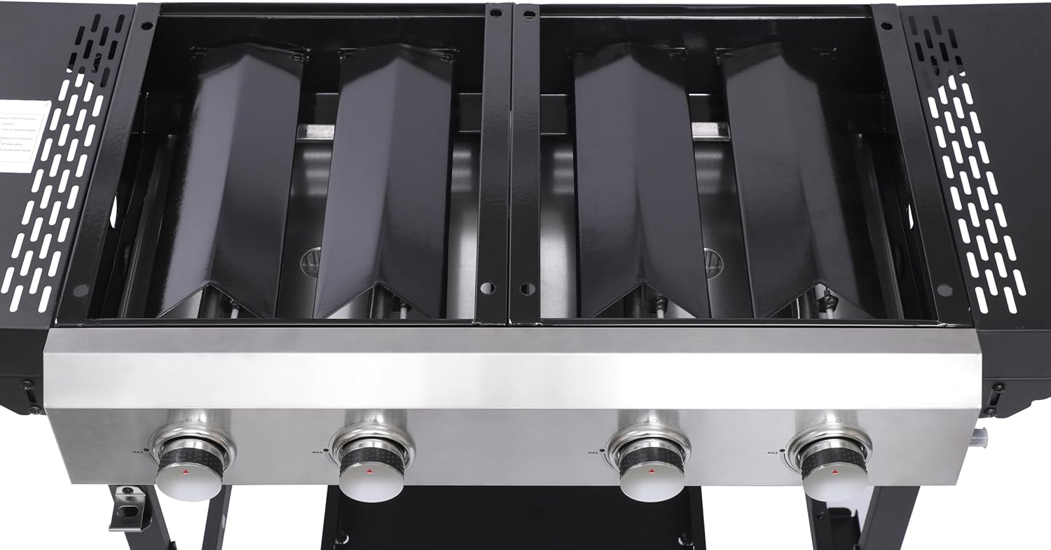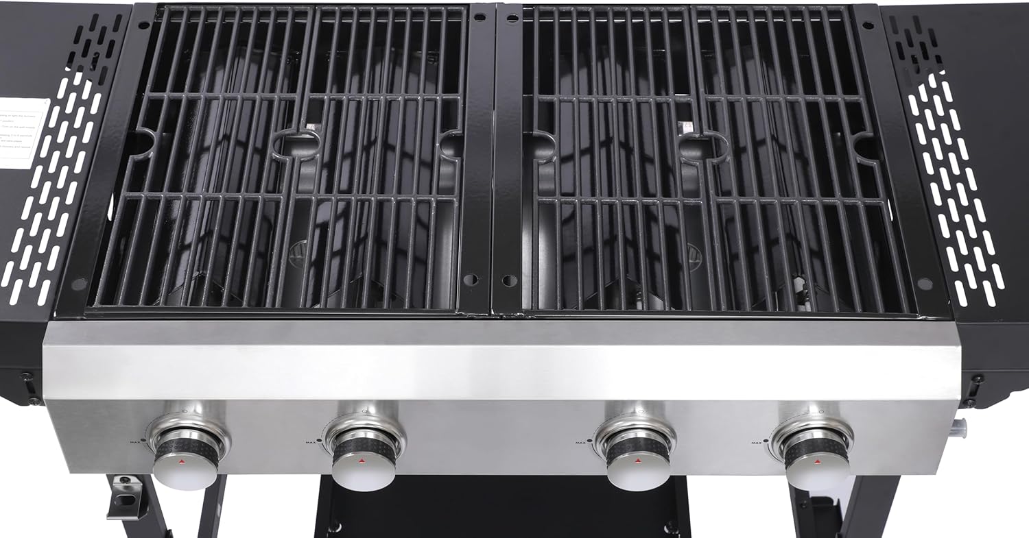• 🔥 Massive 38,200 BTU Output – Four primary burners + side burner for full meal prep.