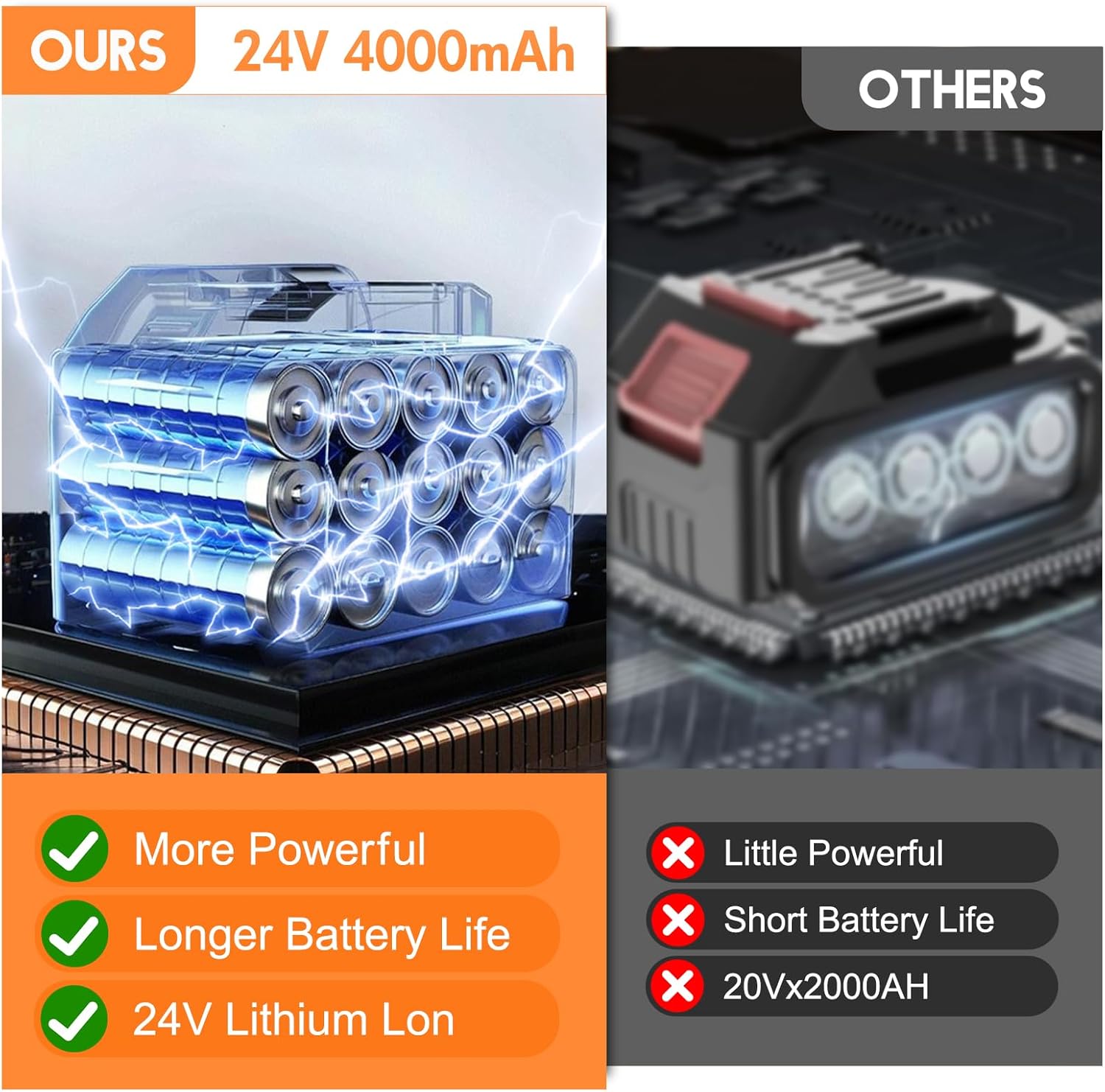 • Double Battery for Extended Runtime: Includes two 4.0Ah batteries for 40–60 minutes of continuous cutting (70–90 mins no-load). Swap batteries for unlimited runtime—perfect for large yards. No cords, no gas, just eco-friendly power