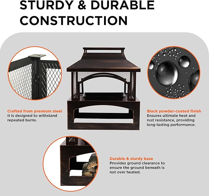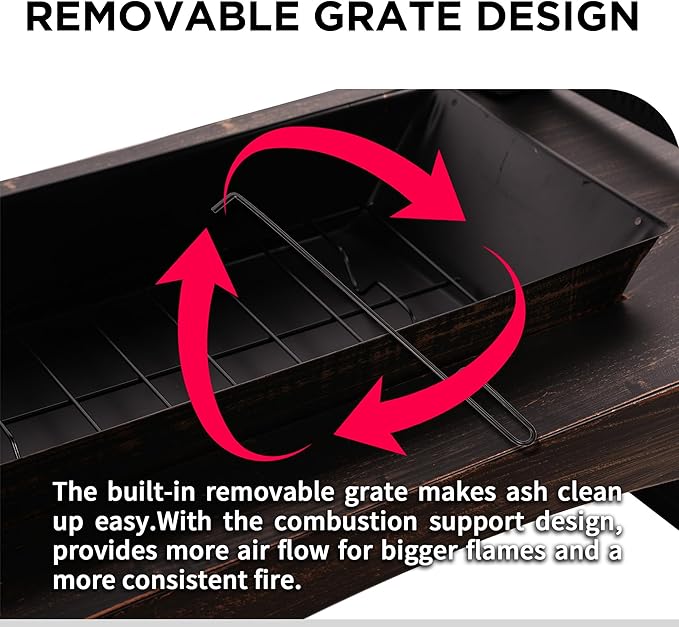 • Practical Accessories Included: Every outdoor fireplace comes with: (1) Poker for log adjustment, (2) Removable ash pan, and (3) Detachable grate. Everything you need for the perfect fire pit for outside wood burning - no extra purchases required.