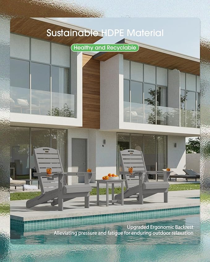 Adirondack Chairs Set of 6, Outdoor Fire Pit Chairs, HDPE All-Weather Adirondack Chairs with Cup Holder, Lawn Chair for Deck, Patio, Garden (Grey)