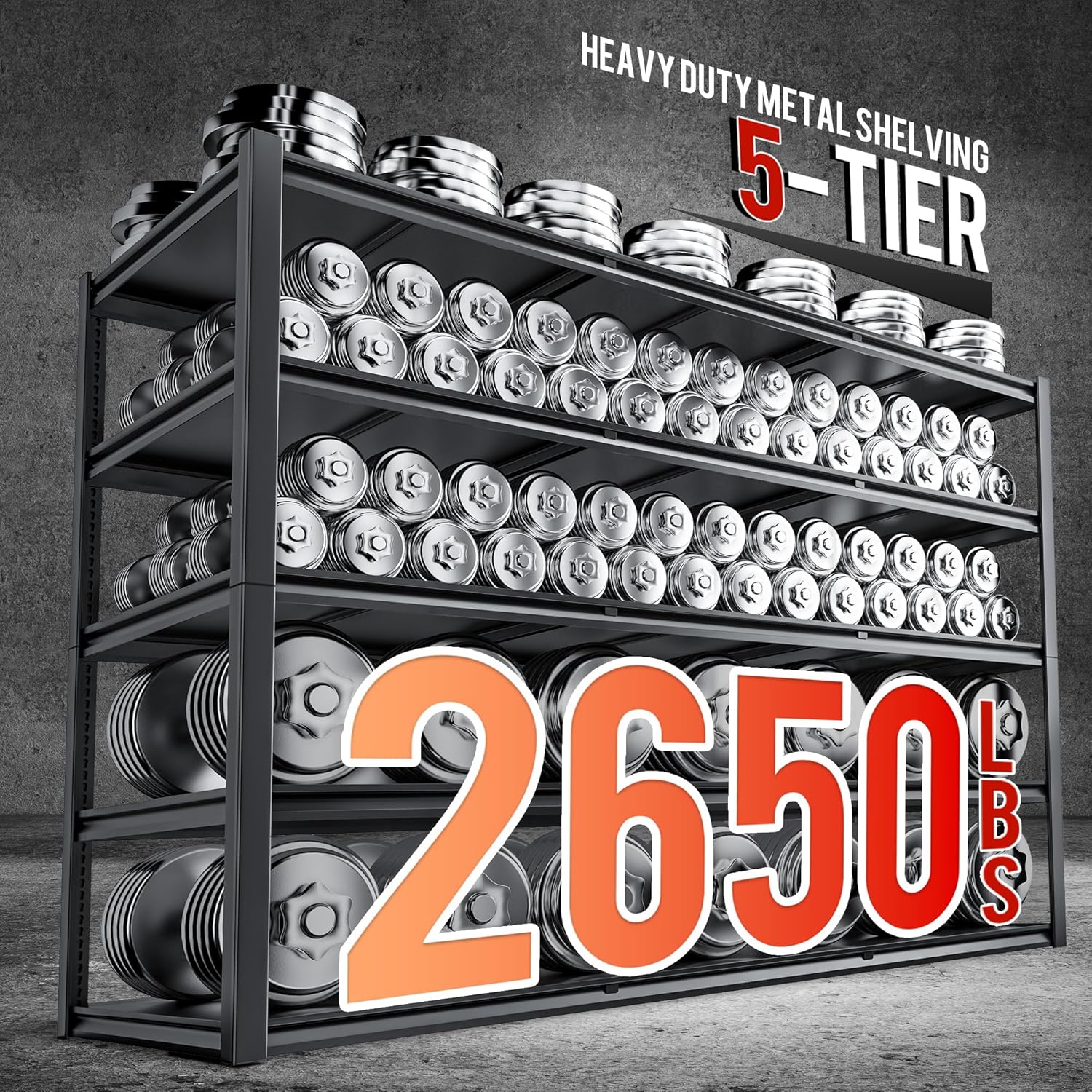 59.8" W x 72.2" H x 24.2" D Storage Shelves Metal Shelving, 2650LBS Garage Shelving Unit with Adjustable Shelf, 5 Tier Storage Rack for Garage, Pantry, Warehouse, Basement, Black