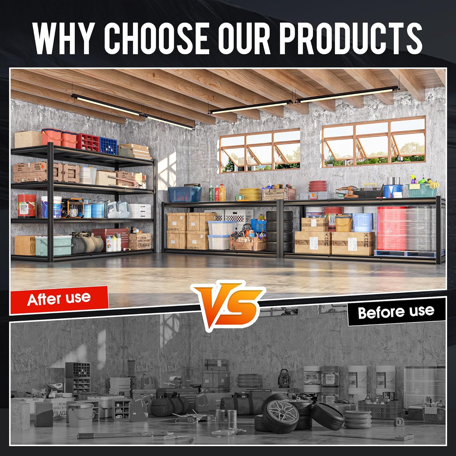 • 【Ultra-Safe Industrial-grade Load-bearing System】 Made of commercial-grade cold-rolled steel and reinforced structure, The garage shelving is specially designed for heavy-duty warehouses. The specially designed powder coating on the surface not only prevents rust and scratches but also makes it easy to clean. It is equipped with a professional anti-tipping kit as standard, ensuring absolute stability. This is not merely a tool, but a lifelong investment you plan for your garage